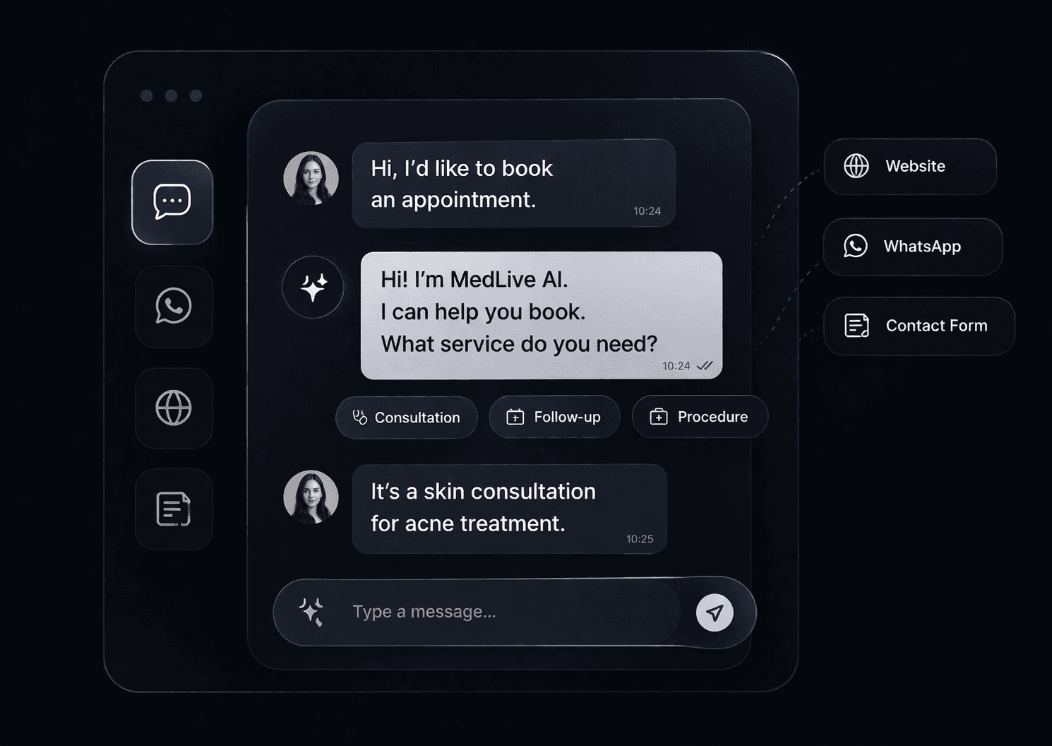 From first inquiry to pre-diagnosis — MedLive handles the entire patient journey.